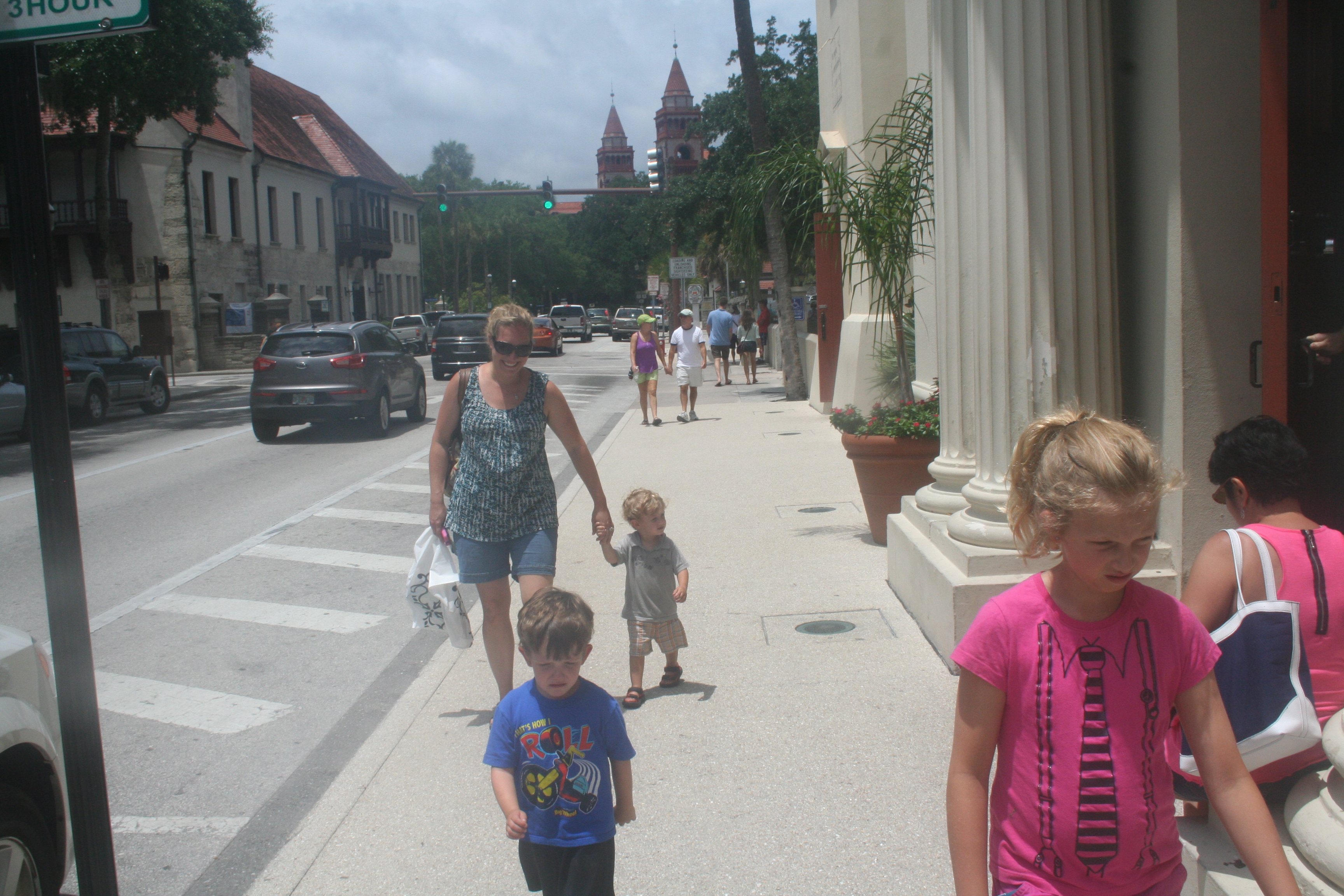 We walked up and down three flights of stairs many times a day to put the kids to bed or get from our room to the front door. We walked to and from the beach over the protected dunes all the way to the ocean and back several times. We had a good distance to walk to and from the condo pool, and just when we thought we hadn’t quite had enough walking already, we took a day trip to St. Augustine’s Old Town.