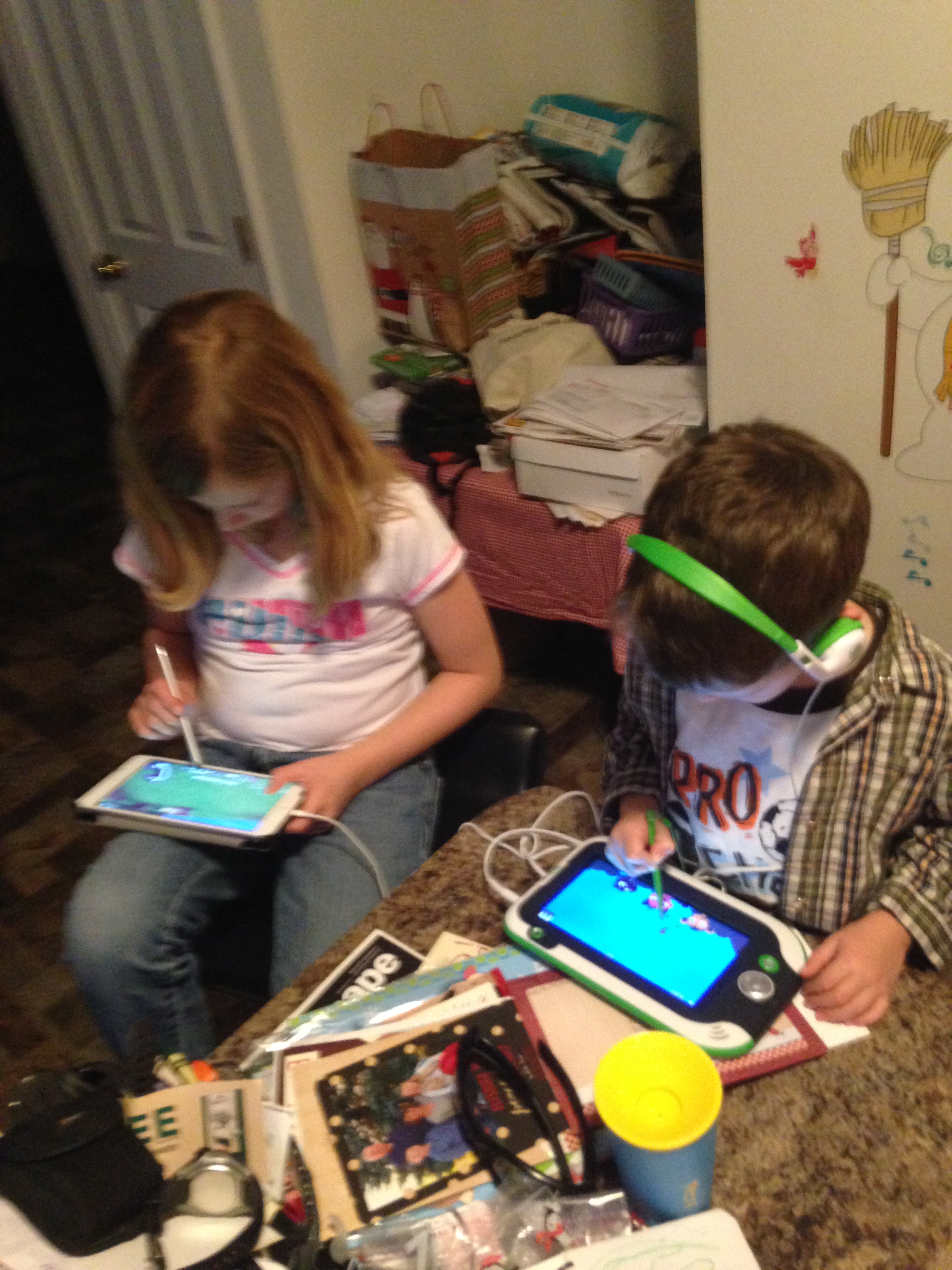 Here is Ace with her face in her new iPad mini (it happened, I know we suck, right?) while Cool watches.
