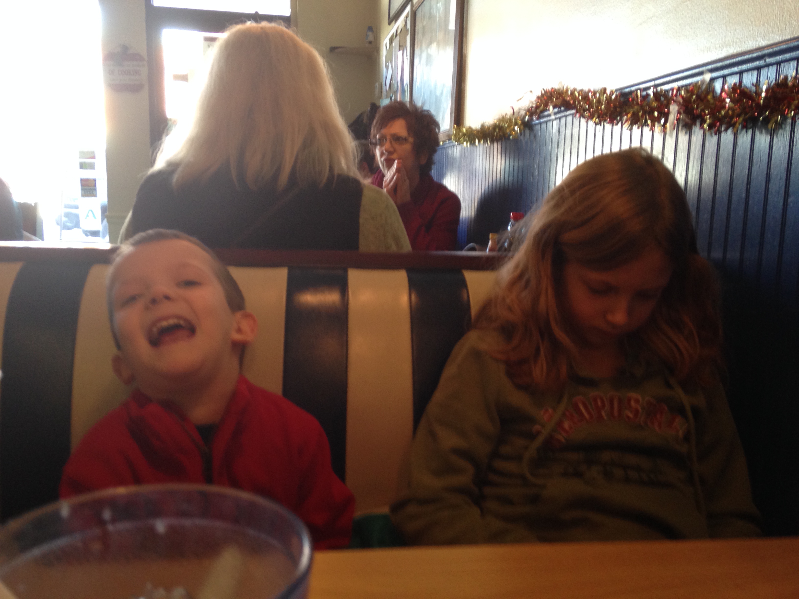 Here we are just Daddy and the kids out to breakfast. Oh look, Ace is iPadding still. Is that a word?