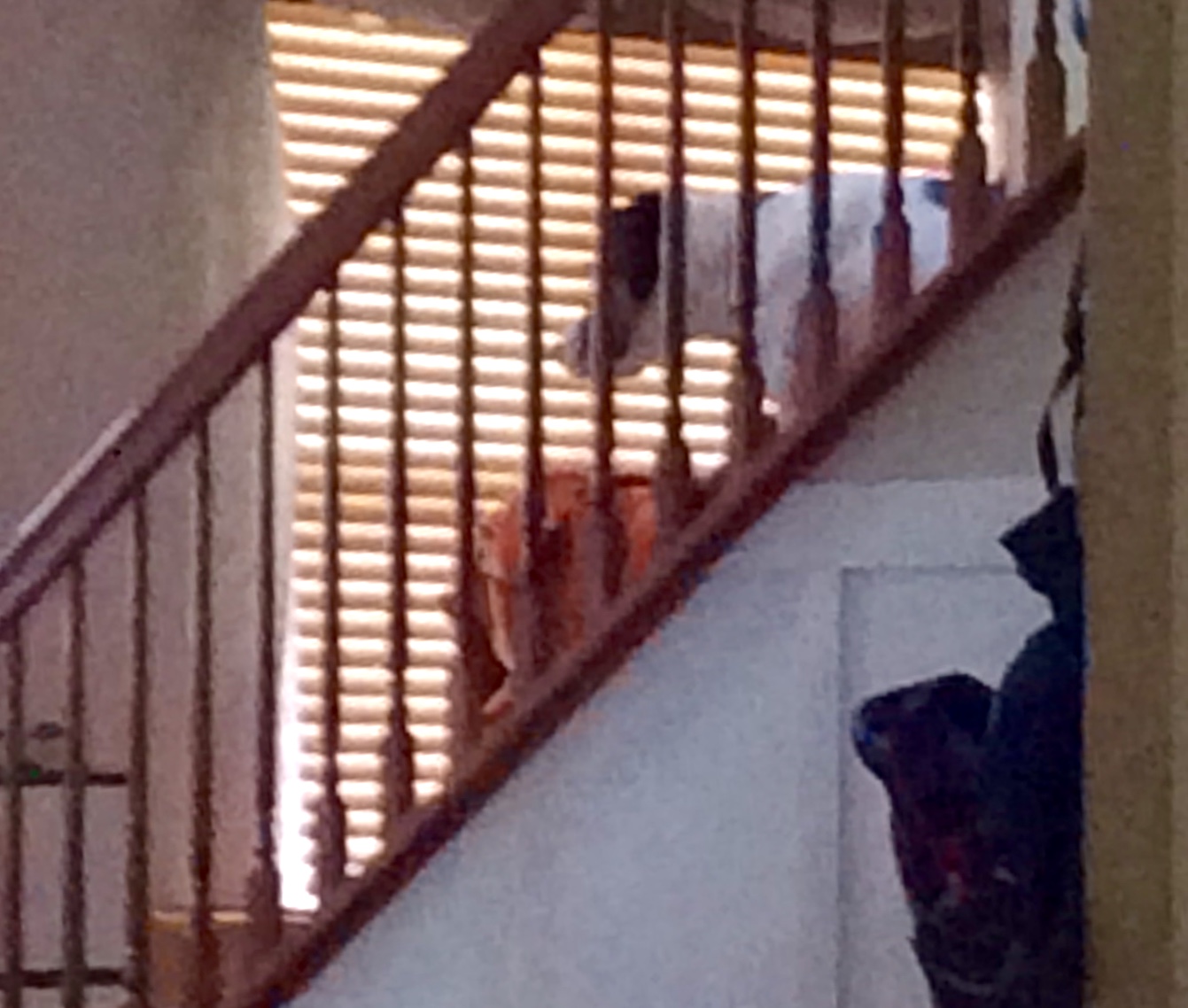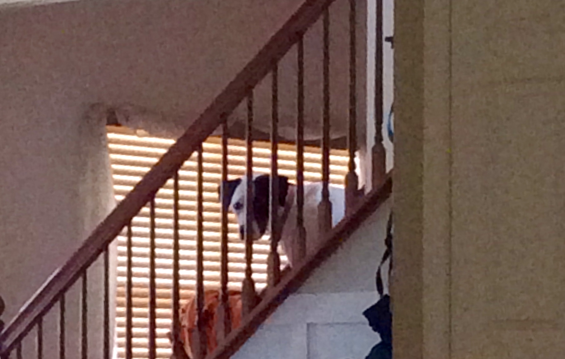 • OMG, the dog was on the stairs doing that when I got home from work at midnight and she scared the bejeezus out of me! She’d never been there before at night like that. Freak!! Lol. Is that sarcasm about the writing? I’ve been bad with it recently I know.